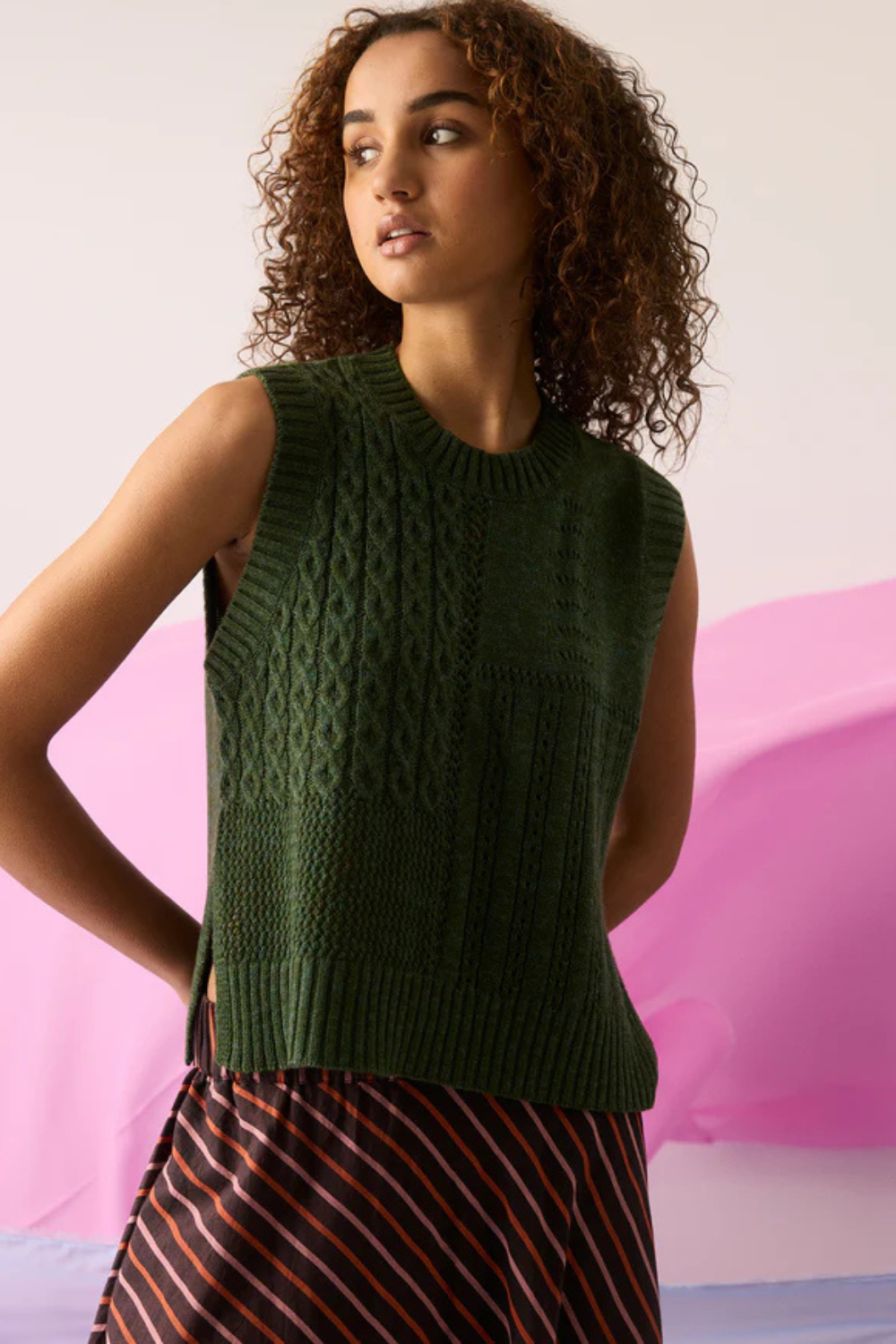 Nancybird: Billie Cable Vest - Cypress Green