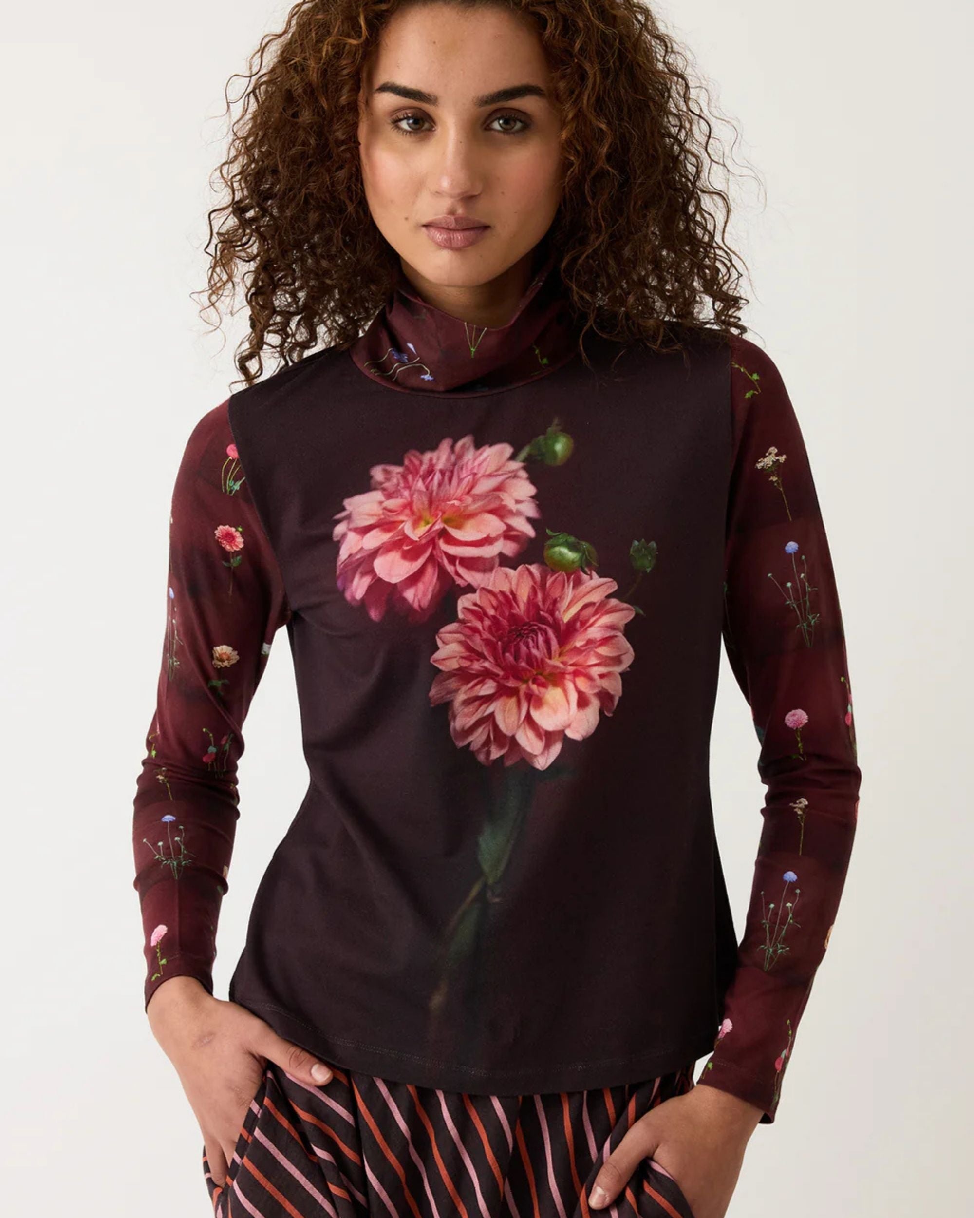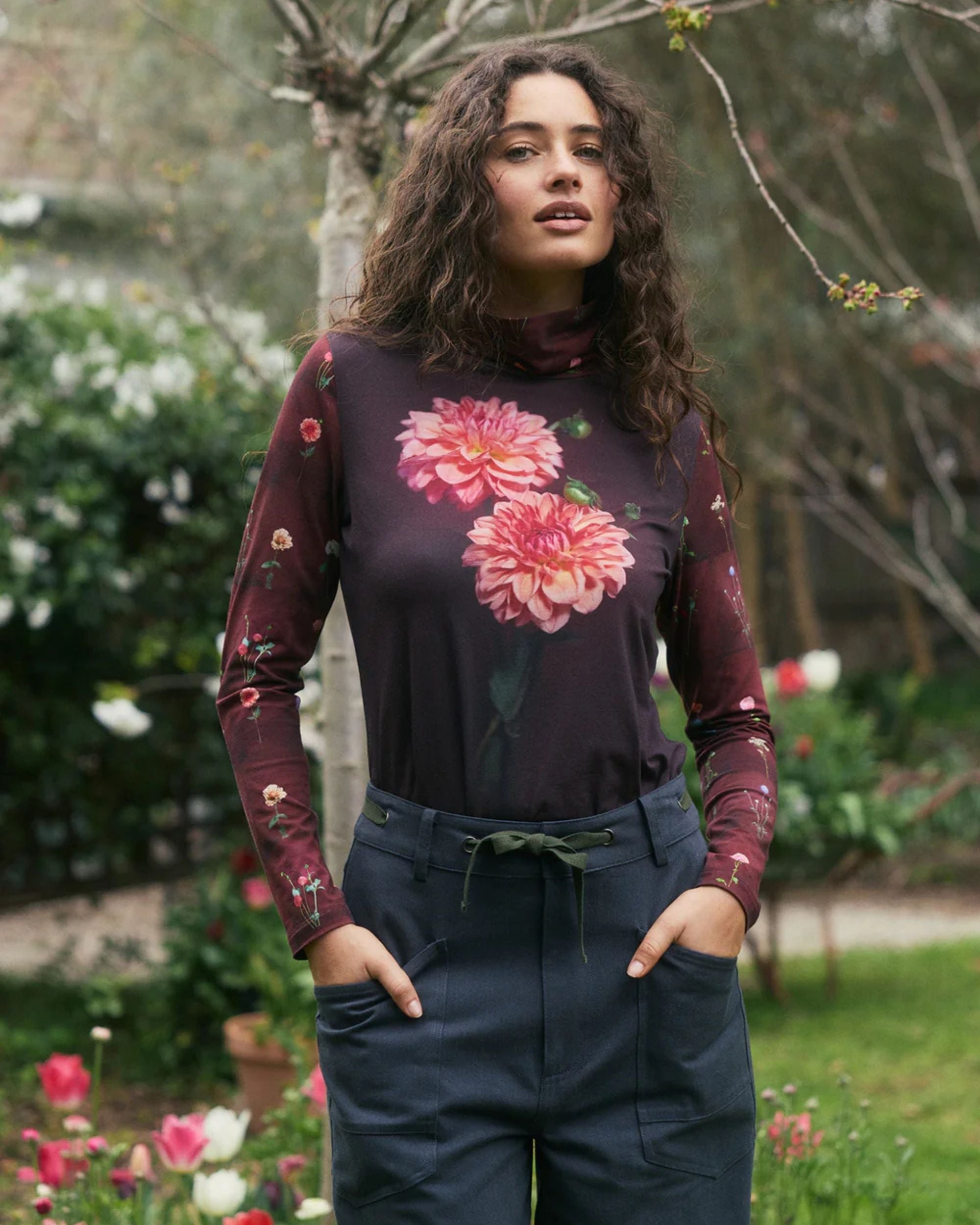The Sundew Skivvy by Nancybird is a fitted, everyday layering piece crafted from soft organic cotton jersey. Featuring the Dahlia artwork by founder Emily Wright, it brings a refined artistic element to your winter wardrobe.