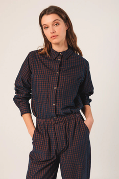Indi & Cold: Vichy Micro Corduroy Overshirt - Marine
