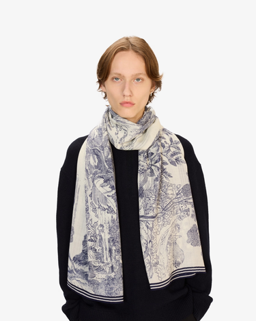 The Histoire Scarf 70 by Inoui Editions features one of the brand’s iconic illustrated prints, where felines roam through a detailed landscape inspired by nature and myth. Crafted from 100% fine wool, it offers softness, warmth and an elegant drape.
